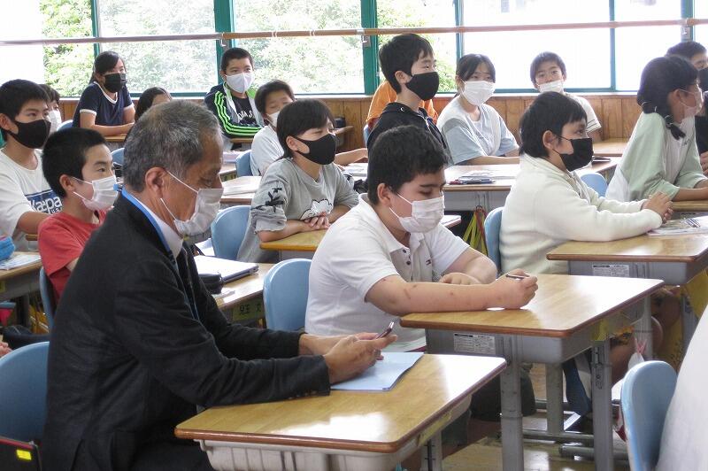 先週、市の文化財課から4名が来校されて、縄文時代や弥生時代の生活などについて教えてくださいました。市内で発掘された2千年前の土器のかけらや、狩猟で使っていたおのや矢じりなど実際に見たり触れたりしながら学習しました。本校から出てきた土器のかけらもあり、子どもたちはとても興味深く触ったり質問したりしていました。
