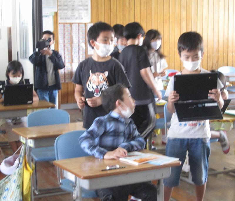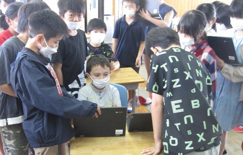 6月1日(水)、アフガニスタンから6年生、4年生、1年生の3名が明和小学校へ来ました。日本語がまだ話せないので通訳の先生も配置されました。朝はリモートで全校のみんなへ紹介しました。教室へ行くと子供たちが集まって輪ができていました。