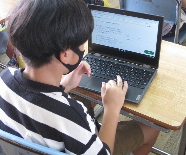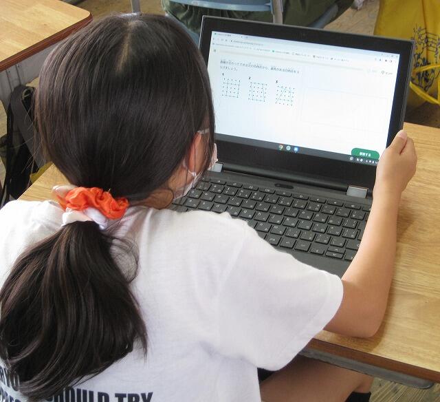 6月22日(水)、集中してAIドリルに取り組んでいる子供たちです。子供の興味や関心、能力、学習進度に応じた問題が出され基礎学力の向上を目指しています。授業中だけではなく雨の日の昼休みや朝の時間など夢中になって取り組む姿が見られます。