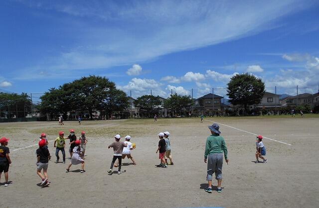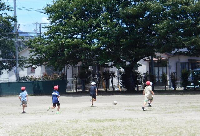 6月28日(火)、昼休みは元気よく外へ飛び出していく子供たちです。梅雨が明けて暑さが増してきました。外ではマスクをはずしたり水筒をそばに置いてあそんだりと熱中症に留意しながら遊んでいます。