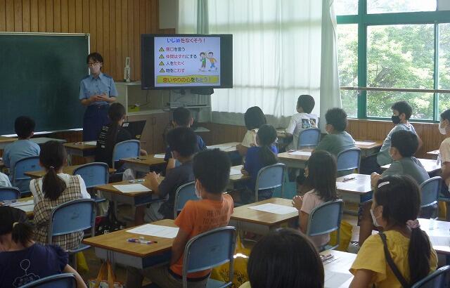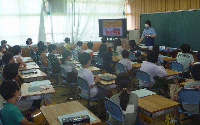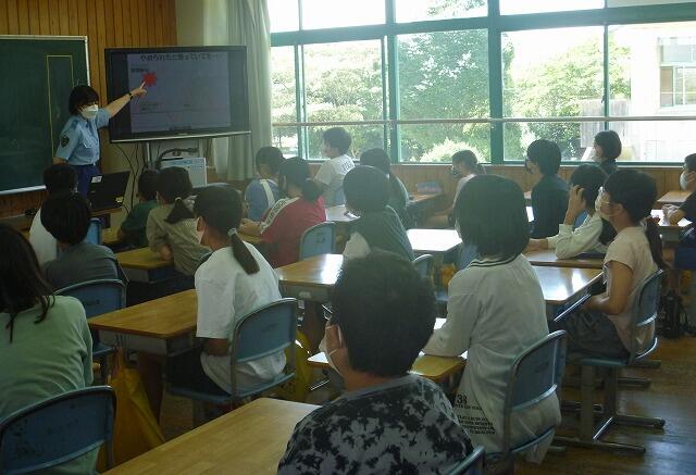6月29日(水)、都城警察署から3名の方を講師に迎えて、3年生から6年生を対象に非行防止教室がありました。夏休みに向けて、犯罪やトラブルに巻き込まれないために注意することを教えていただきました。