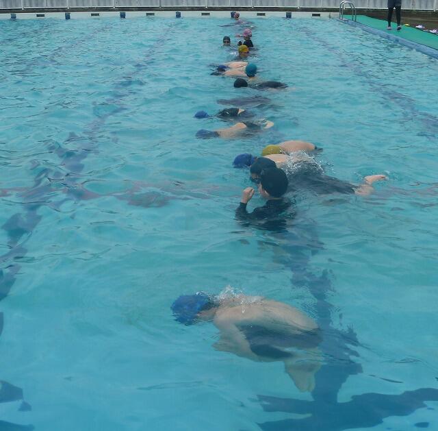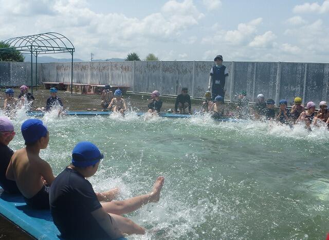 7月12日(火)、4年生がプール開きをしました。「プール使用の約束」を確認した後、シャワーで体を洗って入水しました。子どもたちは久しぶりのプールにとてもうれしそうでした。水に慣れるために、ふし浮きやけ伸びなどに取り組んでいました。