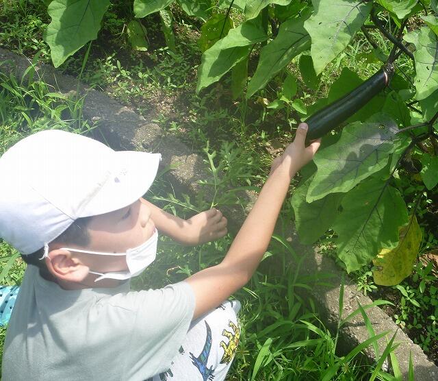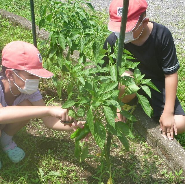 7月13日(水)、3年生が育てている野菜のお世話と収穫をしていました。ピーマンやなす、きゅうりは丁度食べ頃に育っていました。「ピーマンのにおいがします!」「きゅうりが顔より大きい!」と興奮していました。ミニトマトやサツマイモの収穫はまだ先のお楽しみのようです。