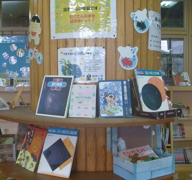7月の学校図書館を紹介します。星に関する本の展示や虫に関するコーナー、本の紹介があります。