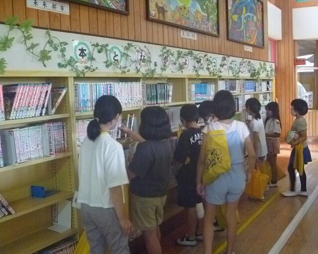 今週は、夏休みに向けて、図書の貸し出しをしています。どの学年も、休みの間に読みたい本を熱心に選んでいました。