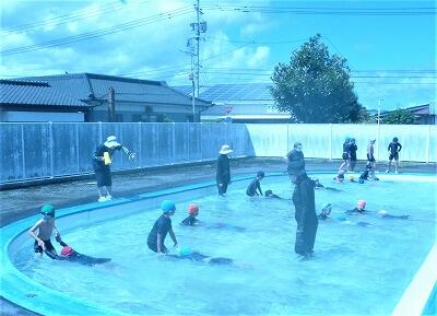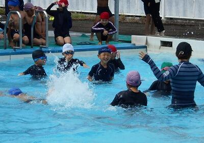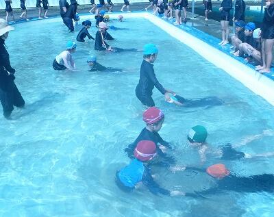 9月15日(木)は、1年生と5年生の最後の水泳がありました。1年生は水遊びの学習です。友達とペアになって、体の力をぬいてフワリと浮かんだりできるようになっていました。5年生は、25メートルの記録会で、どこまで泳げるか挑戦していました。
