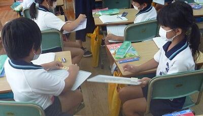 10月20日(木)21日(金)の2日間、五十市中学校から3名の生徒が職場体験で本校に来ています。仕事の現場に入り働く目的や意義を体感したりするためです。3,4,5年生のクラスに入り、タブレットの使い方をアドバイスしたり、優しく声をかけたりするなど積極的に小学生に関わっていました。