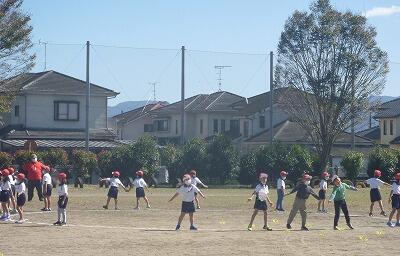 10月26日(水)、1年生が体育発表会の練習をしていました。かけっこでは、スタートの時から気合いが伝わってきます。「まっすぐ!前を見て!」「腕を振って!」と先生たちの励ましの声も響きます。ダンスは、体全体で一生懸命に表現していました。
