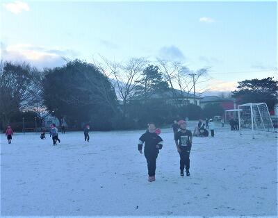 12月23日(金)、朝の校庭は雪で真っ白でした。登校してきた子供たちは、「雪です!」と興奮気味。雪の玉を作ったり、運動場を走ったりと嬉しそうでした。