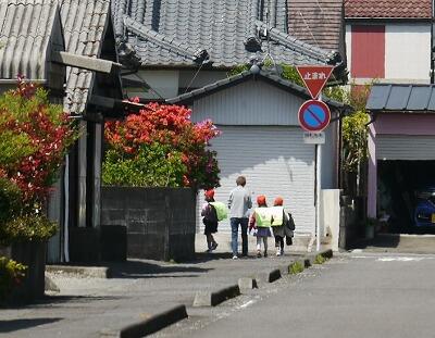 集団下校では、みんな1列に並んで、安全に気を付けて下校していました。