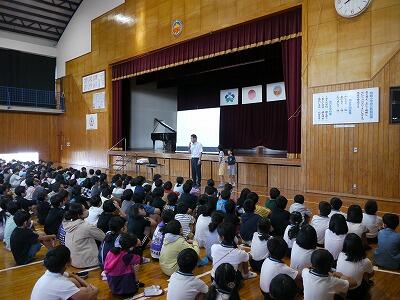 「明和小学校へようこそ」という気持ちのこもった拍手が鳴り響いていました。