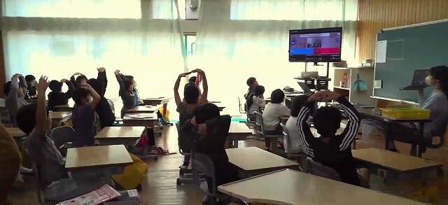 校長室と各学級をリモートでつないでの集会です。