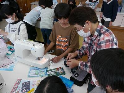 学校支援コーディネーターの方が連絡を取ってくださり、地域のミシンの操作に詳しい方にきていただきました。