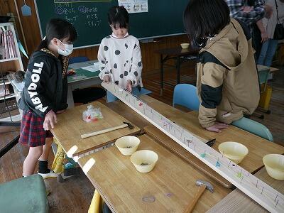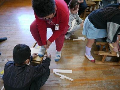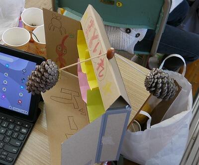 1年生は、生活科で秋の素材を使ったおもちゃづくりを楽しんでいました。