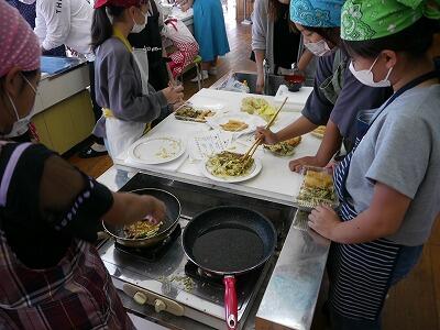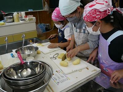 6年生は、1組が家庭科の授業、おうちの方にも手伝ってもらいました。
