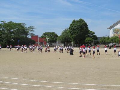 5年生です。バトンパスの練習に熱心に取り組んでいます。