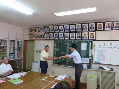 松原光洋 様(上蓑原公民館長)、坂元三郎 様(学校支援コーディネーター)