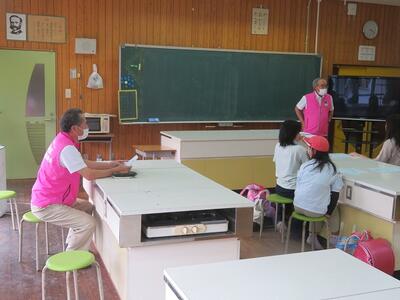 ボランティア委員会の皆さんが中心となり、校長室から「リモート」で行います。