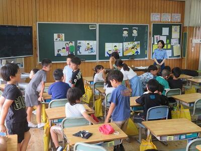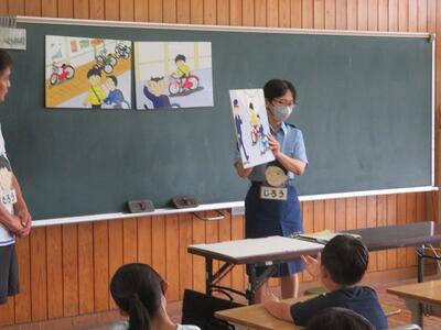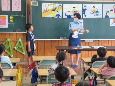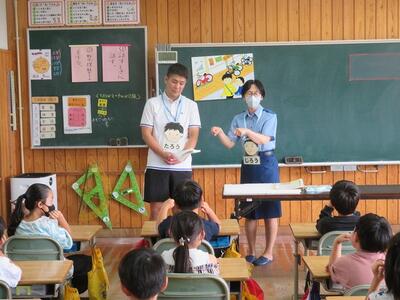 都城警察署の方に講師をお願いし、子どもたちに、お話をしていただいています。