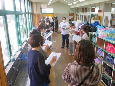 4年生です。体育館で丁寧な事前指導がありました。