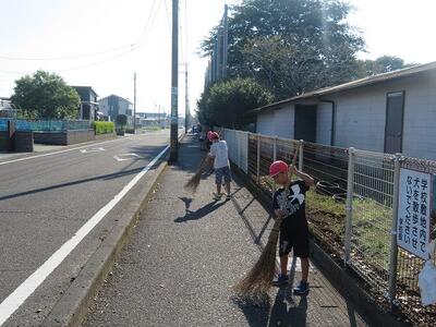 今朝は、高学年の子どもたちと、運動場・運動場周りの歩道の清掃を行いました。台風の強風により、運動場にも多くの落ち葉や枝が落ちていました。