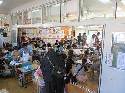 1校時は下学年、2校時は上学年の参観授業です。親子で活動できる授業を計画している学年が多く、子どもたちは楽しく学習していました。