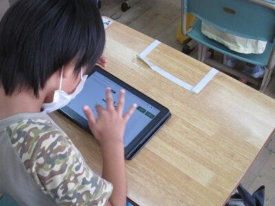 9月3日(金)、1年生が初めてタブレットPCを使いました。みんな笑顔でタブレットPCを触るだけで歓声が上がります。自分でパスワードを入れてログインしたり、クラスルームに入ったり・・・一つ一つ確かめながら全員ができると拍手が起こっていました。最後は、ひらがなを書いたり、お絵かきをしたり楽しそうに使っていました。