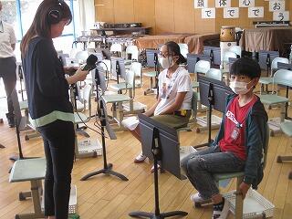10月29日(金)のエフエム宮崎「ら・ら・ラジオ」(8:20~10:55)の番組で、本校の校歌とインタビューが放送される予定です。実は、今週その取材がありました。インタビューには、6年生の代表児童2名と、先生代表で鈴木先生が出演しています。明和小の紹介などを聞かれていました。放送日が楽しみですね!