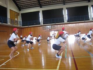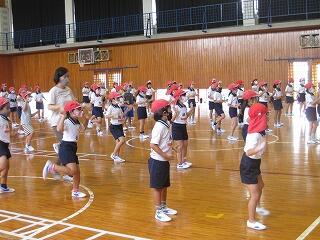 10月12日(火)、6年生がダンスの練習していました。練習してまだ1週間だそうですが「さすが6年生!」と声が出るほど動きが揃っていて迫力がありました。曲名は言いませんが、動きを見たらすぐに分かると思います。腰を低くしてかまえたり、飛び跳ねたり練習を頑張っています。