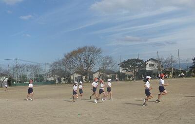 持久走大会に向けて、どの学年も練習に取り組んでいます。5年生は、昨年度よりも長い距離を走ります。運動場を5分間走った後に、タブレットPCに記録をしています。目標の記録達成に向けて、がんばっています。