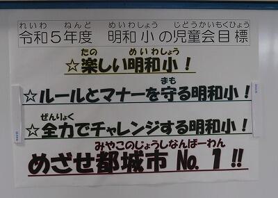 明和小学校の児童会目標を達成するために、委員会の皆さんががんばっています。