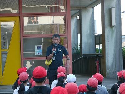体育館に登校班長さんと副班長さんが集まり、地区担当の先生方が話をします。
