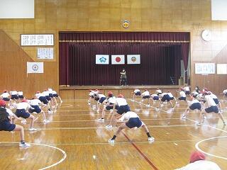 10月12日(火)、6年生がダンスの練習していました。練習してまだ1週間だそうですが「さすが6年生!」と声が出るほど動きが揃っていて迫力がありました。曲名は言いませんが、動きを見たらすぐに分かると思います。腰を低くしてかまえたり、飛び跳ねたり練習を頑張っています。