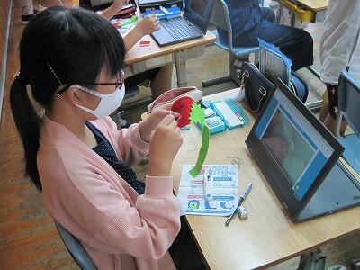 6月3日(木)、5年生が家庭科の学習で裁縫をしていました。それぞれタブレットの動画を見ながら、まつり縫いをしていました。分からないときは、停止したり繰り返したりしながら、自分のペースでスムーズに取り組めていました。