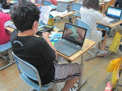 タブレットを使って裁縫(5年生)