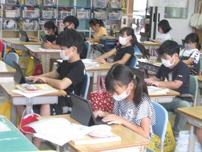 7月8日(木)朝の始業前、3年生がタブレットPCを開いて黙々と何かに取り組んでいます。よく見るとキーボードを打つタイピング練習をしていました。そのタイピングの速さに驚きました。これまで継続して練習してきた成果でしょう。練習が終わると、読書を始めたり、始業の準備をしたりして静かにすごしていました。