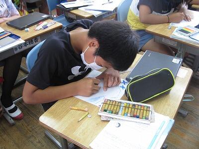 7月6日(火)、6年生が灯籠の絵を描いていました。盆地まつりが今年も中止となったため、市民の皆様を笑顔にしようと灯籠を1000個作成して中央通りに設置することになりました。そのプロジェクトに協力しようと、本校では全児童が灯籠の絵を描いています。6年生は、早速タブレットPCで盆地祭りや都城市のHPを調べて、コロナに負けず皆が元気になれるような絵を考えて夢中で描いていました。