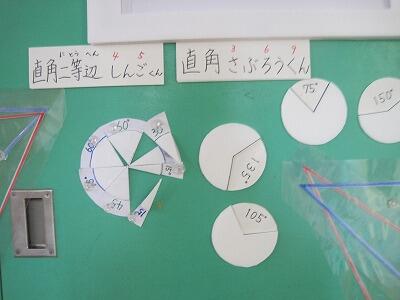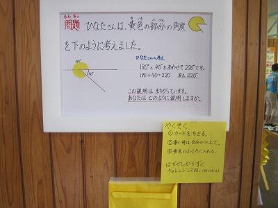7月5日(月)、4年生以上の算数の授業では、1学級を2つに分けて少人数できめ細かな指導ができるようにしています。少人数担当の先生が、楽しみながら算数を理解できるように、廊下に算数コーナーをつくっています。手に取って動かせる図形や、クイズなどを毎月工夫して掲示しています。