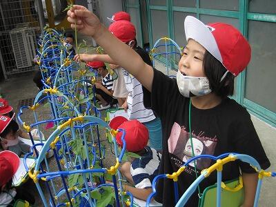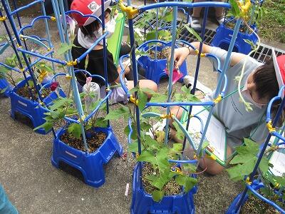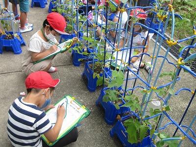 7月1日(木)、1年生の育てている朝顔も成長して、きれいな花が咲き始めました。朝顔のつぼみや花などを観察して、ワークシートに絵や文でまとめていました。「見てください!」と自分の朝顔を誇らしげに見せてくれました。