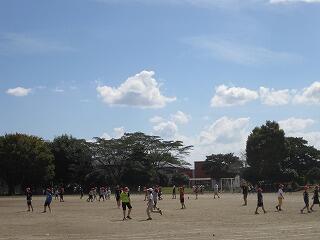 10月5日(火)、今週から昼休み時間が元に戻りました。みんな嬉しそうに運動場で遊んでいます。ボール遊びや鬼ごっこ、一輪車、ブランコ、鉄棒、タイヤ遊びなど、思い切り体を動かしています。秋晴れの空の下、子供たちの笑顔と歓声でいっぱいの運動場でした。