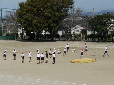力強い踏切と飛ぶ姿勢に気を付けて、自分の記録に挑戦していました。