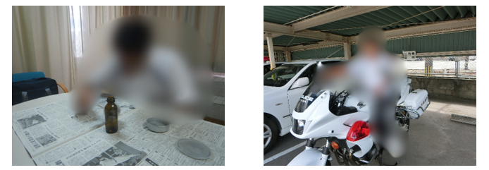 1日目は、鑑識体験や護身術の指導をしていただきました。滅多にできない鑑識の体験で、生徒は道具や作業に興味津々の様子でした。緊張感のある空気の中でしたが、職員の方が優しく教えてくださいました。警察の専門性の高さに圧倒されながらも、生徒は真剣に取り組んでいました。