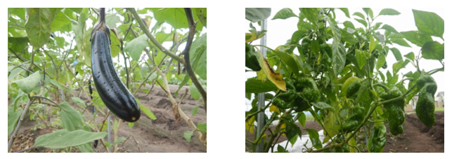 また、ふと隣の畝を見ると、1学期に植えた茄子やピーマンが大きく育ち、収穫できるほどのたくさんの実をつけていました。自分たちで植えた野菜が成長していく様子を間近に見ることができ、児童生徒たちは達成感を感じていたようでした。今回植えたじゃがいも・人参・大根も大きく育ってくれることを楽しみにしています。