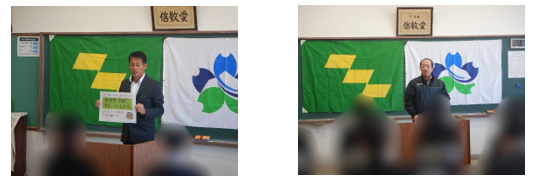 12月12日(木)第4回学校運営協議会を開催しましたが、会に先立って委員の皆様をゲストティーチャーとするキャリア教育の授業を行いました。