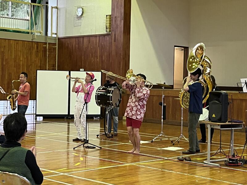 6月8日(木)に本校体育館にて、鑑賞教室が開催されました。当日は、朝から強い雨が続き不安もありましたが、コンサートが始まるとそんな不安も一気に吹き飛びました。さすが関西で結成された日本を代表するニューオリンズブラスバンドということだけあり、軽快なトークやリズミカルで心揺さぶる演奏は圧巻でした。また、会場には近隣の地域の皆様も足を運んでくださいました。おかげさまで、生徒や職員と一緒に本物の音楽に触れていただく中で、たくさんの笑顔があふれる素敵な時間を過ごすことができました。ブラックボトムブラスバンドの皆様をはじめ、地域や開催にあたってご尽力いただいた関係者の皆様、本当にありがとうございました。
