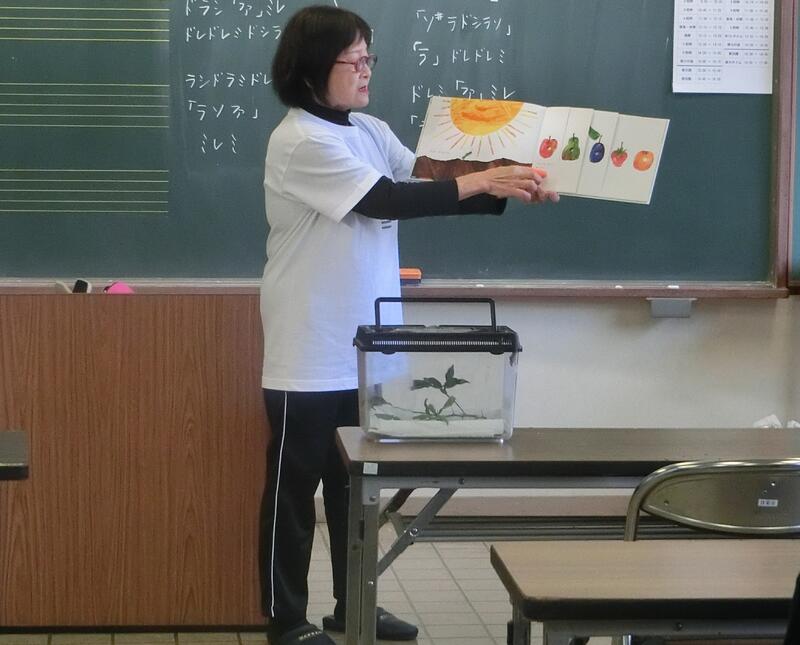11月28日(木)の朝自習の時間の中で、山田町の長谷地区民生児童委員の川崎様に読み聞かせをしていただきました。「はらぺこあおむし」の読み聞かせをしていただき、生徒たちも集中して聞いていました。また、蝶のさなぎを持ってきてくださいました。学校で、立派な蝶になることを楽しみにしたいと思います。