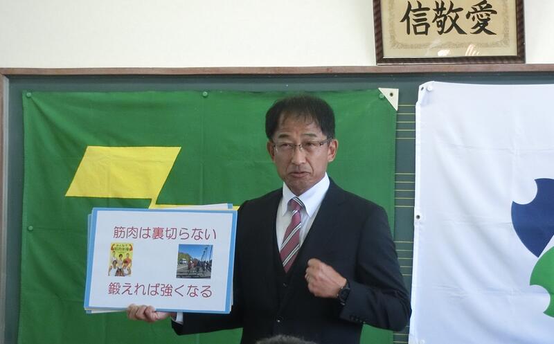 また、赤い羽根共同募金から学用品や、スポーツ用品などを頂き、贈呈式も行われました。生徒たちも嬉しそうに鉛筆や消しゴムを受け取っていました。今後の学校生活でも大切に使ってほしいと思います。冬休みになりますが、年明けに生徒全員がそろって元気に登校することを願っています。