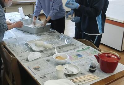 門松づくりと餅つきが行われました。門松づくりでは、生徒が実際に竹を切って、飾りつけなどを行っていました。きれいな門松を作ることができました。餅つきでは、力いっぱい餅をついたり、餅を丸めたりと楽しそうに取り組んでいました。餅つきの後は、つきたての餅をおいしく頂きました。