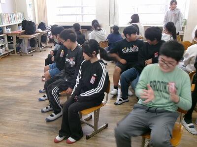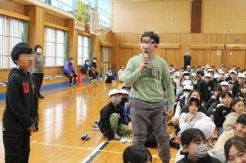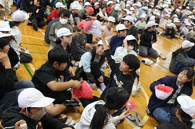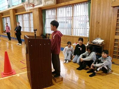 続いて、計画委員会の進行による「お別れ集会」が行われました。内容は、6年生にまつわる「○✕クイズ」です。