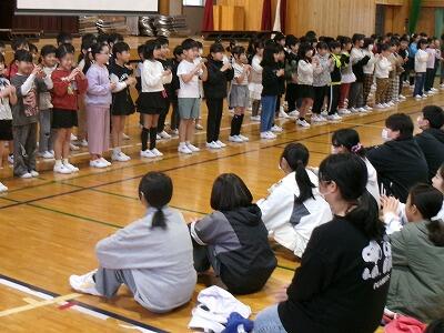 1〜5年生は、これまでの感謝を歌や言葉にのせて発表。それに応える6年生の姿も頼もしく、互いの思いが通じ合う素敵な時間となりました。全校で集まる機会が限られる中、他学年の表現に触れる良い刺激にもなったようです。